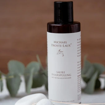 Mit pflegendem Rosmarinwasser für die Anwendung nach der Haarwäsche mit einem basischen Shampoo oder einer Haarseife. Auch bei besonders trockenem Haar oder hartem Leitungswasser geeignet. Auftragen, einwirken lassen und nach wenigen Minuten ausspülen.
